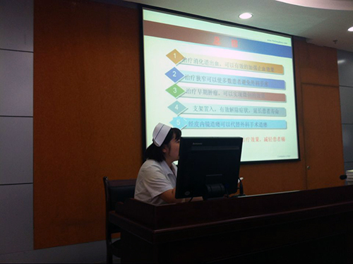 此次学习围绕消化道疾病护理的最新理论及消化道内镜治疗的护理等进行讲解。授课过程主要以ppt的形式展现,并结合了大量图片、生动的病例资料,使大家对内镜知识有了更直观、深刻的认识。我院内镜护士翁海风、邹敏、万莉婷、汪青云分别对无痛胃肠镜、内镜下止血等内镜护理领域进讲解,让参加学习的同仁发现,原来消化内镜可以解决这么多问题,开阔了大家的眼界,也通过这次机会,让更多的人了解消化内镜。课程结束后杨护士长说道:近年来,我院消化科内镜治疗已取得长足的进步,仅ERCP量居全省第三。