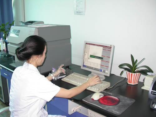 工作人员操作美国Beckman流式细胞分析仪
