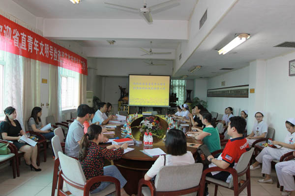 为进一步推进青年文明号创建工作,积极弘扬“敬业、协作、创优、奉献”职业精神,8月23日上午,省直青年文明号检查组一行三人莅临我院,检查考核2010—2011年度省直青年文明号的创建工作。院党委书记雷良华出席会议并作重要讲话,党办主任杨婷、团委副书记黄亚聪、部分厅直医疗卫生单位团委负责人、省直青年文明号申报集体负责人及医院职工代表30余人参加汇报会。
