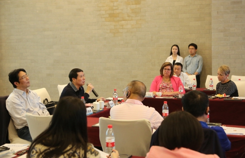 Dr. Cheri Olson为在场听众介绍了梅奥的医院管理架构与创新,分享以患者为中心的医疗实践经验,围绕分级诊疗、单病种和临床路径的管理、DRGs和质量管理工具的应用等方面的推广进行了阐述。随后,李秋根以《医院全面绩效改革的探索》为题,从绩效改革的背景、实施、效果、难点这四个方面分享了我院综合绩效改革的相关内容。会场采用同声传译,专家精彩的讲解获得听众的连连赞叹。主题演讲后,围绕国内外医疗质量与安全、交流与合作发展,由Lori J. Baumbach主持,与会专家以问答的形式开展了一场生动的中英高峰对话,引起现场阵阵掌声。