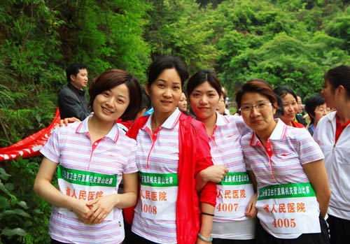 4月19日上午,我院登山代表队在院工会的带领下来到南昌植物园,参加省卫生厅举办的厅直属机关登山比赛。经过激烈竞争,我院选手李征华、涂俐嫣勇夺女子甲乙两组冠军,男子乙组第3名。本次登山比赛中,我院3男、5女进入小组前12名,体现了医护人员强健的身体素质,取得历史最好成绩。4月26日,涂俐嫣、唐志明代表卫生系统参加了2013年省直机关职工春季登山健身行活动。