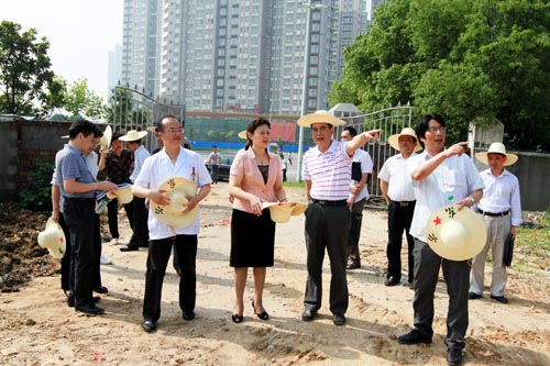 5月22日,烈日炎炎,省卫生厅副厅长万筱明一行视察了我院凤凰洲分院工地,厅副巡视员方晓等一同视察。我院院长时军、院党委书记雷良华、副院长王晓华等相关部门负责同志向卫生厅领导汇报了新院建设进展。