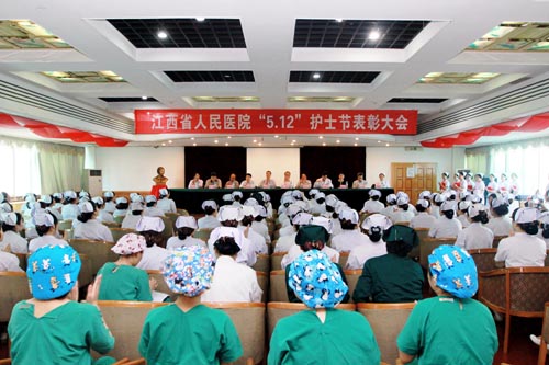 党委书记雷良华宣读了2012年在护理工作中表现突出、取得优异成绩并受到表彰的25名五星级护士、6名优秀护士长,2012年度江西省女职工岗位创新技能大赛护理组优秀团体奖获得者,江西省五一巾帼标兵,“优质护理服务示范工程”先进病房和先进个人,护理知识竞赛集体优胜奖和获奖个人,护理质控前5名,优秀带教老师以及夜班最多人员名单。院领导们为获奖的先进个人和集体进行颁奖,慰问一年来她们坚守岗位付出的辛勤努力,并对她们所取得的成绩表示祝贺。