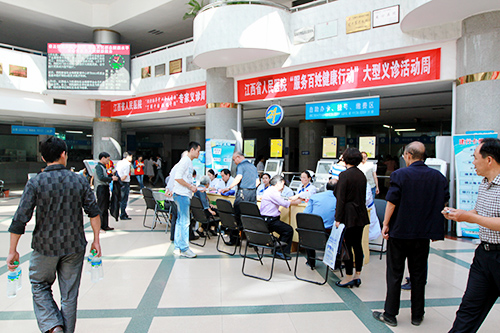 10月15—18日,由我院副院长霍亚南带队,组织专家赴共青城市人民医院、高安市人民医院、进贤县人民医院、贵溪市人民医院分别巡回义诊,医疗队的专家们来到基层医院进行常见病、多发病及其他健康知识的诊疗咨询。每个地点均有15-16名副高以上职称专家坐诊,开展教学查房、参与疑难病例诊治和讨论、进行学术讲座,发放健康宣教材料。其中,我院在进贤县人民医院开展了妇女两癌筛查、儿童先天性心脏病筛查。