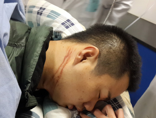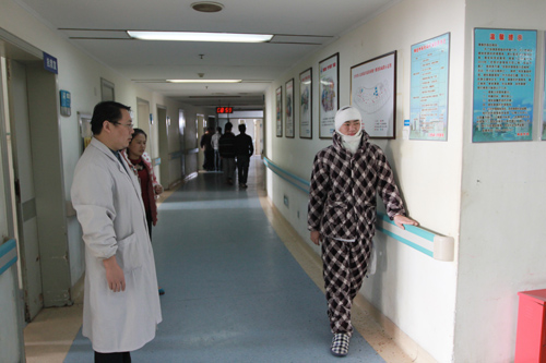 12月30日,引流管内已无明显积液,患者可以下床走路、正常进食、思维清晰,基本可以与人交流。拆线查看,患者的头、颈、下颌等部位基本消肿。