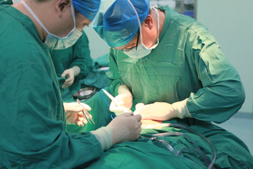 晚8时麻醉插管正式开始,麻醉医师王少林在病人不能平躺、头颈弯曲的特殊体位下克服困难,利用其高超的技能打通了艰难手术的第一关。