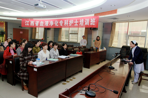由江西省卫生计划委员会和江西省护理学会联合举办的首期血液净化专科护士专业知识培训于3月17日在我院裙楼二楼第一教室正式开班。这是我院作为江西省首个血液净化专科护士培训基地举办的第一期理论培训班,首期学员15名,来自省内外各大医院。