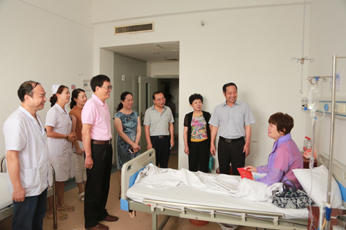8月12日,炎热的气温阻挡不了省直机关的关怀送入我院,省直机关工委书记杨兰根在省卫计委副主任李晓琼、省卫计委直机关党委专职副书记刘慧玲、院党委书记雷良华的陪同下,深入病房,慰问了我院大病职工,为我院职工送上慰问金,带去健康的祝福。