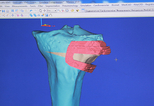 8月9日,骨二科副主任医师何剑颖收治了王女士,他通过术前查诊、研究CT摄片,提出了一个适应于王女士的诊疗方案:胫骨高位截骨术。8月13日,由骨二科董谢平教授采用3D打印技术,设计出一套专门的导板,极大提高了手术的成功率和效率。当天手术进行的很成功。8月18日,王女士已经可以独立拄拐下地行走。她说:“就像睡了一觉,醒来后已经躺在病房里,手术做的很好。”