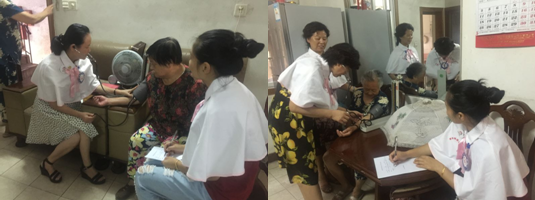 对口社区的帮扶对象主要是高龄、行动不便的老人,普遍年龄在80岁以上。帮扶内容主要是解答老人的健康咨询、提供科学的养生指导。比如,针对高血压、糖尿病、心脏介入术后等慢性病老人进行服药指导、康复训练等。每周的不间断服务受到社区主任及帮扶老人的一致认可。
