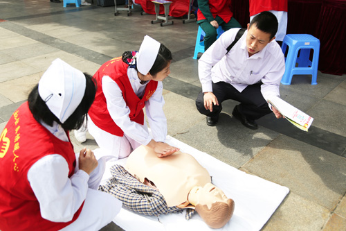 10月10日,第七届“急救白金十分钟——全国自救互救日”南昌站活动举行。我院牵头的8家医疗机构和江西省中西医结合学会灾害医学专业委员会及急救医学专业委员会等学术组织的40余名医护人员在现场为过往市民传授急救知识、普及急救方法。