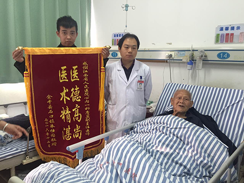 记得2016年的12月20日深夜,急诊送入一名89岁的男性患者,胸闷胸痛、气逼难忍,提示急性心肌梗死。病情凶险,分秒必争,和家属进行了简洁有效沟通后,唐昱副主任医师立即在介入室行急诊手术。虽然患者年龄大,血管状况差,但手术非常成功,患者及家属怀着感恩的心,赞扬道:“唐主任不仅有好的医术,更重要的是有良好的医德,一身正气,遇到这样的好医生是我们患者莫大的福气!”