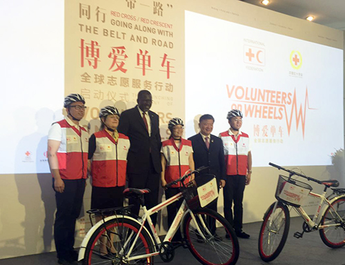 5月15日,红十字/红新月与“一带一路”同行暨“博爱单车”全球志愿服务行动在京启动。中国红十字会会长、红十字会与红新月会国际联合会副主席陈竺,红十字会与红新月会国际联合会秘书长哈吉·阿西等相关部门和单位代表出席。