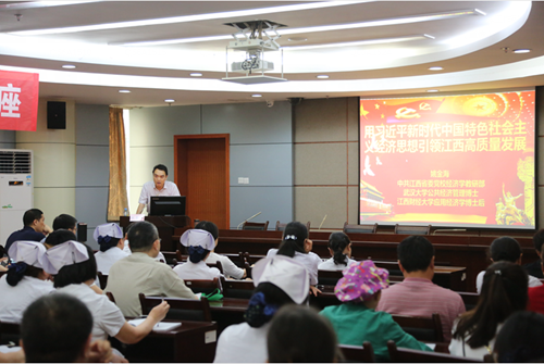 姚金海主要从习近平新时代中国特色社会主义经济思想的历史地位与鲜明特征、习近平新时代中国特色社会主义经济思想体系框架、用习近平新时代中国特色社会主义经济思想引领江西高质量发展三个方面对十九大报告中的经济领域论述进行了阐述。习近平新时代中国特色社会主义经济思想是5年来推动我国经济发展实践的理论结晶,是中国特色社会主义政治经济学的最新成果,是党和国家十分宝贵的精神财富。姚金海逐一讲解了该思想体系框架下的根本要求、战略目标、主要内容和主要内涵。将理论应用于实践,姚金海提出了“一个战略、三个模式”,即“招商-项目-产业-发展”战略,全产业链模式、全员参与模式和全程服务模式。姚金海联系实际,结合医疗行业的发展和所面临的挑战,帮助我院职工深刻领会了十九大报告中经济思想的丰富内涵和现实意义。