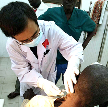 很多门诊病人因体表包块来就诊,特别是颈部包块,由于当地的外科医生水平有限,切除颈部上血管和神经丰富的包块,风险比较大。细针穿刺技术因为损伤小、诊断时间短,显得尤为重要。有一次,一名警察的妈妈因为颈部包块来就诊。我做了细胞学穿刺后,告诉患者应该是结核,建议复查胸片。几天以后,偶遇了病人的主治医生,他高兴地用法语告诉我病人果然患有结核病。慢慢地,也会有其他医院把病理标本送来,让我们帮忙诊断。潜移默化之中,我的工作提升了江西省人民医院和中国医疗队在当地的影响力!