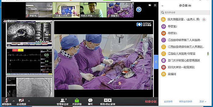手术直播过程中,最高峰时全国有7000余位医生、60余家医院同时在线观看直播,并进行现场互动交流,心血管同道可以做到足不出户观看手术直播。网络视频直播是信息化时代的新生事物,我院开展网络视频直播复杂病变介入治疗手术过程,为心血管病医务工作者提供了学习及交流的空中渠道,对省内甚至国内介入水平的提高做出了一定贡献。在院领导的支持下,冠心病四区及介入室等多个科室参与了网络直播会议的筹备工作,会议在江西省心血管界反响良好。