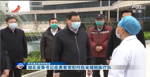 3月16日下午4时许,湖北省委书记、湖北省新冠肺炎疫情防控指挥部指挥长应勇,赴随州市检查督导工作时,在随州市中心医院看望慰问驰援随州的江西医疗队。江西援随州前方指挥部指挥长陈敏,江西援随州医疗队队长、江西省人民医院副院长黄清参加慰问。