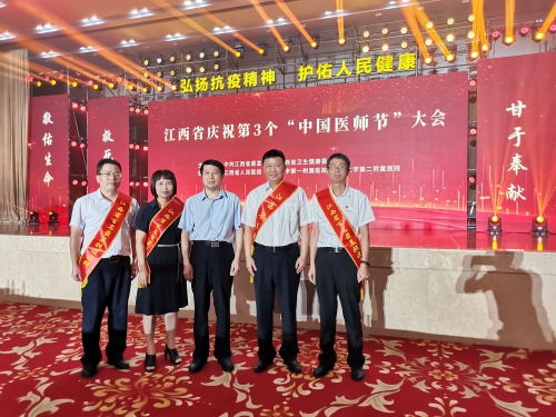 2020年8月19日是第3个中国医师节。从江西省庆祝第3个“中国医师节”大会上传来好消息,我院器官移植科主任李新长荣获首届“江西医师奖”,医务处处长邹伏英、医院感染管理处处长李福太、重症医学科医师杨小刚荣获“江西省百名最美抗疫医师”荣誉称号。省政府副省长孙菊生、省政府副秘书长樊雅强及省卫健委主任王水平等领导为他们颁奖。院党委书记李秋根、院长谭友文、副院长黄清出席大会。
