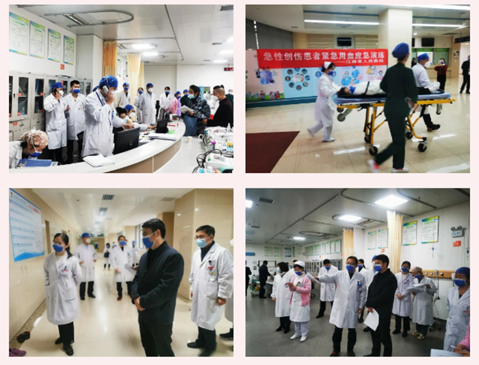 委员们集体观摩了急性创伤患者紧急用血应急演练。