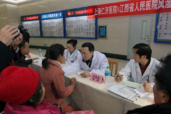 8时30分,吕良敬教授如约而至,病友们经过预约排号,凭号一一就诊,义诊现场秩序井然。省人民医院风湿免疫科主任王友莲是本次义诊的组织者和发起人,在她的带领下,魏辉平副主任医师、陈红副主任医师、施春花主治医师、邹伏英主治医师一同上阵接诊。风湿免疫科的护士们也辛勤的为病人提供周到贴心的服务,前来义诊的病友有的是从县区赶来,护士们为他们提供瓶装水;还有坐轮椅来就诊的,护士们安排优先问诊。
