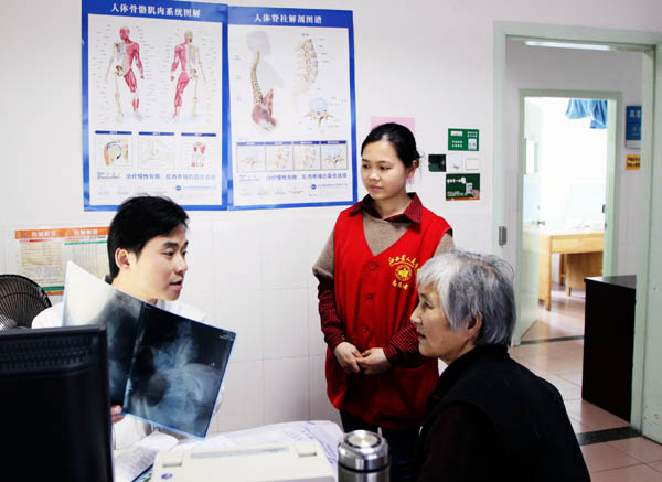 丁淑琴耐心的向老人家讲解,带着老人拍了胸片。拿到X光片后,便主动带领老人去门诊二楼骨科问诊。这天坐诊的是骨一科龚飞鹏主治医师,龚大夫确诊老人因摔倒而导致骨折,需要手术治疗才能彻底康复,目前可以用药物控制疼痛,他建议老人多卧床休养。