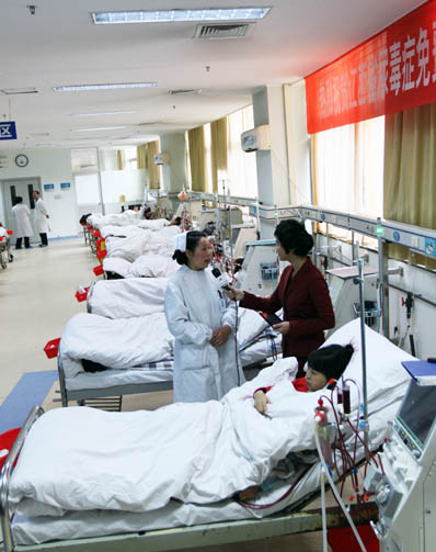 陈鹏(化名)是4月份刚刚申请免费血透治疗的患者之一,今天,他正在接受免费血透治疗。陈鹏是城镇医保对象,在他之前,已经有28名重症尿毒症贫困患者成功申请了免费血透治疗的待遇。他们中绝大多数是城镇医保对象,也有少数新农合对象。根据有关规定,“如尿毒症患者就医,医疗机构与当地医保、新农合、医疗救助经办机构签定协议实现即时结算”。自去年12月15日,这项惠民利民的政策实施以来,越来越多的患者前来省人民医院咨询相关政策,先后有几十位患者已经办理或正在办理相关手续。