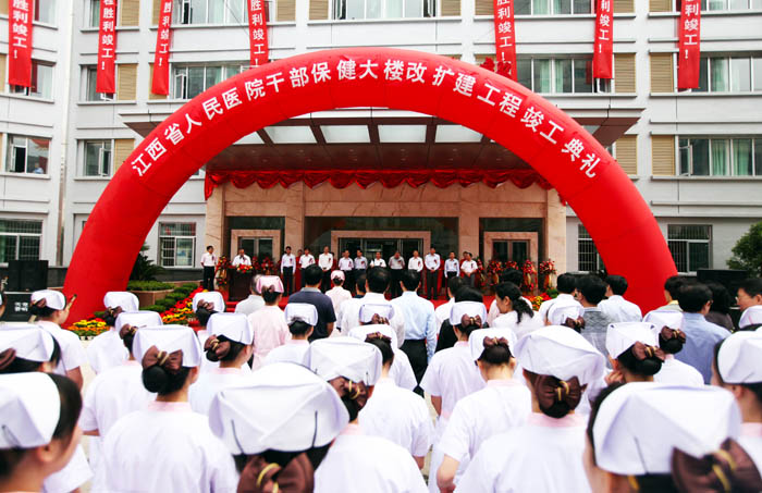 6月2日上午10时,江西省人民医院干部保健大楼改扩建工程正式竣工。省委常委、常务副省长凌成兴出席竣工仪式,宣布大楼胜利竣工并为大楼剪彩。省人民医院院长时军、省建工集团总经理李平、省卫生厅厅长李利分别致辞。省人民医院党委书记雷良华主持仪式。
