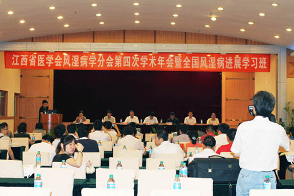 由江西省医学会和江西省人民医院共同举办的江西省医学会风湿病学分会第四次学术年会暨全国风湿病进展学习班于6月28日至7月1日在南昌召开。江西省医学会风湿病学分会主任委员王友莲教授主持了开幕式,江西省医学会秘书长洪鹰、江西省人民医院院长时军、北京协和医院风湿免疫科赵岩教授、江西省卫生厅医管处喻茂林主任、江西省医学会风湿病学分会副主任委员陈钦开及江西省医学会风湿病学分会副主任委员涂卫平等人出席了开幕式,江西省人民医院时军院长致欢迎辞并祝贺会议的胜利召开,江西省医学会洪鹰秘书长作了重要讲话。