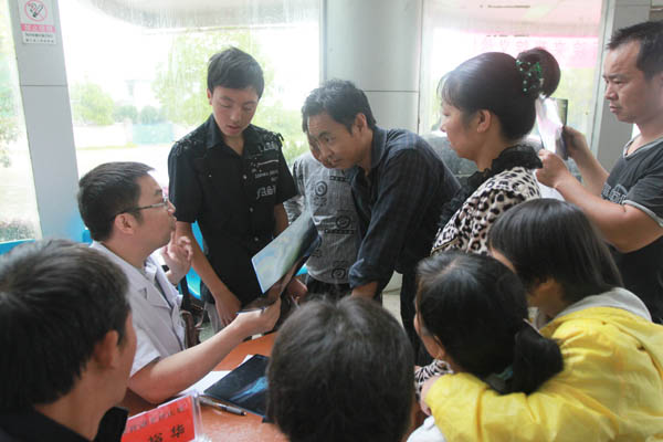 尽管义诊当天有中雨,在社协科王健主任的带领下,专家们依然在8点10分赶到医院,心内二科王洪主任医师、呼吸内科兰允重主任医师、内分泌科刘精东主任医师、皮肤科杨美平主任医师、眼科贺雅琳主任医师、妇产科黄亚玲主任医师、骨一科肖裕华副主任医师披上工作服就开始坐诊。大厅里早已有百余人在等候,在县人民医院廖院长的周到安排下,乡亲们井然有序地在各个专科桌前排队,眼科、妇产科的专家被安排在二楼专门开辟的诊室内接诊。