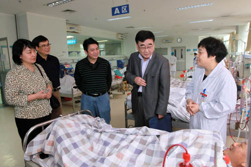 座谈会后,在雷良华和霍亚南的陪同下,编辑记者们深入临床一线调研采访。他们来到血液透析室、整形颌面外科,充分了解了患者的个人状况、民生工程政策在医院的落实情况和疾病治疗的实际效果。