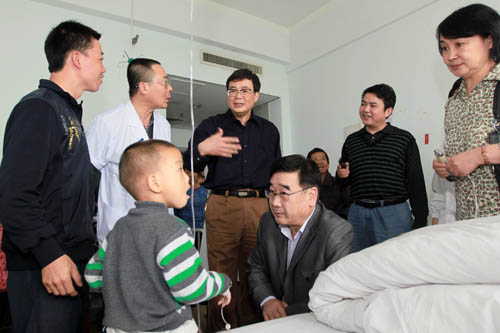时军在介绍我院重大民生工程工作开展情况和取得主要成绩时指出,医院在不断提升医疗服务、强化医疗质量的同时,一直致力于政府重大民生工程实施,从2009年的“光明·微笑”工程到2010年的儿童两病免费救治,再到去年启动的尿毒症患者免费血透,再接至今年的全省医保改制衔接工作,省人民医院无不走在全省医疗机构的前列。截至目前,医院累计开展白内障复明手术573例,唇腭裂修复手术2581例,收治白血病患者16例,治愈出院先心患儿826例,其中仅今年就为500名唇腭裂患者186名先心病患儿实施免费手术,真正取得了医院学科得发展,医务人员得锻炼,人民群众得实惠,各级政府树民心。