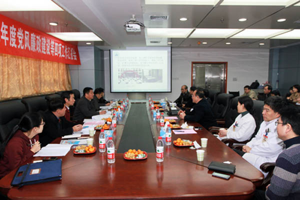 院长时军主持了工作汇报会,他代表医院欢迎卫生厅检查组到省人民医院进行督导检查。党委书记雷良华向检查组进行情况汇报。汇报内容分为:党风廉政建设情况、卫生纠风工作情况、集中整治影响发展环境的干部作风突出问题情况、领导干部防止利益冲突的相关情况。汇报以PPT演示的形式逐条进行了介绍讲解。