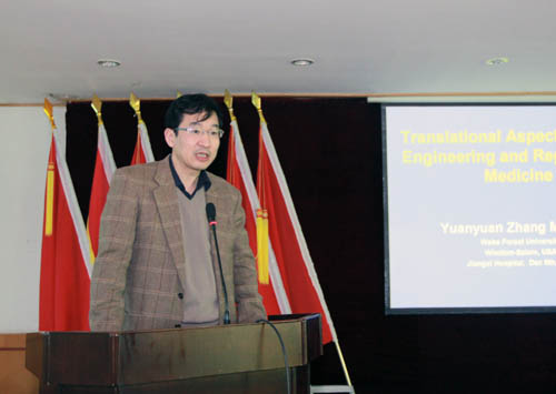12月7日,美国维克森林大学再生医学研究所组织细胞治疗中心主任、国际合作亚洲事务负责人张元原博士应邀来到我院,开展了“尿源性干细胞的生物特性及临床应用”讲座,移植科、神经内科、泌尿外科、临床医学研究所、消化内科、肾内科、血液内科、肿瘤科、骨科、科教科等科室负责人、医师和护士等近百人参加了本次讲座。院长时军、副院长吴晓牧出席。
