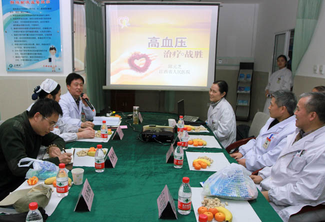 江西省人民医院干部保健门诊于12月19日下午如期举办了第二期“慢病保健论坛”。 会议由干部保健门诊部主任曹平良主持本次论坛,邀请了心血管专家、省人民医院一部邱元芝主任医师就高血压诊疗进展做了专题讲座。参会的保健对象有马世昌﹑王新民﹑任启贤﹑石全保等来自全省各个单位的省、厅级保健对象60余人。慢病保健论坛已经办成品牌,深受保健对象的青睐。