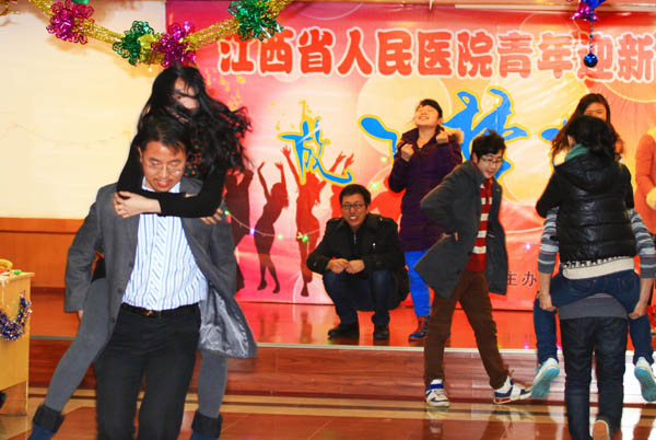 12月27日晚7时30分,我院门诊十楼综合厅里人头攒动、气氛热烈,由院团委主办的青年迎新晚会在这里举行。300多名医院青年们欢聚一堂,大家唱着跳着,用青春的节奏迎接2013年的到来。