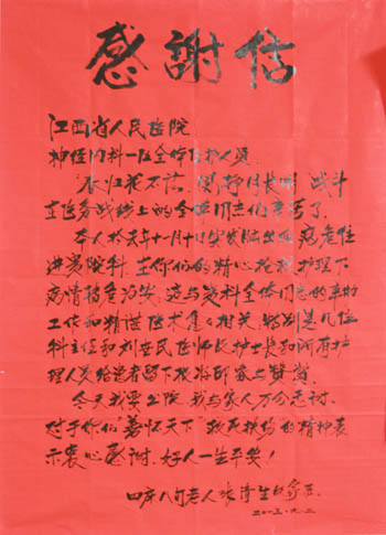 今天我要出院了,我与家人万分感谢,对于你们“善怀天下,救死扶伤”的精神表示衷心感谢,好人一生平安!
