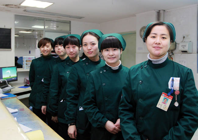 从2月4日起,我院急诊科护士全体换装,工作服由原来的白色长上衣、白色工作裤统一更换成墨绿色套装。这一换装,将对急诊病人开放“绿色通道”的理念,以外在形象的方式更好地表达了出来。来院的急诊患者可以从众多的医务人员中,更直观地识别急诊科护士;同时也有利于护士对病人实施精干、利索的抢救工作。