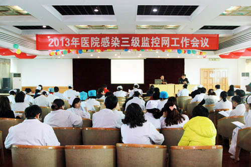 1月29日下午3:00在门诊十楼会议室召开了2013年医院感染三级监控会议,由黄清院长、陈丽霞科长主持会议,医院感染委员会委员、各个科室的监控医生、监控护士等190余人参加。
