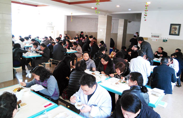 11点半结束上午的议程,与会职工代表们到医院食堂吃快餐,为了响应“光盘”行动的号召,大家都尽量把盒饭吃完,没有吃完的食物一律打包带走。下午1点,会议准时开始。