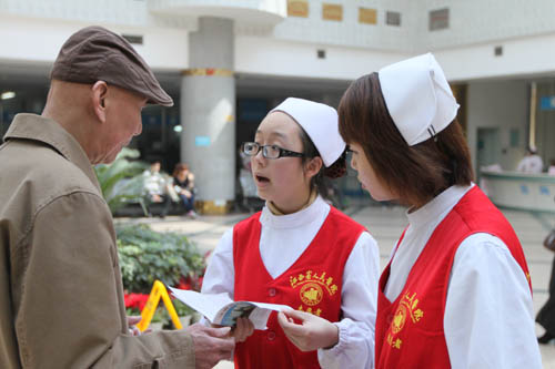门诊青年志愿者节假日坚守岗位热心服务