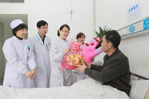 省直青年文明号集体器官移植科和神经内科根据实际情况,为困难患者送去了生活必需品、鲜花及新春的祝福,详细了解他们目前的生活状况,鼓励他们坚持治疗,配合医生规律服药,定期复查,早日恢复健康。