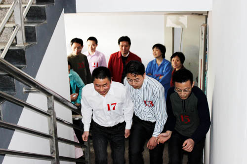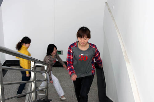 比赛分为男女组,三人一小组进行比赛,每位选手必须从1楼爬至22楼,根据所耗用的时间长短分先后名次。下午3时,男子组的比赛首先拉开了此次活动的帷幕,随后女子组的选手们也一一登场。随着一声令下,选手们积蓄已久的力量瞬间迸发了出来,大家如离弦之箭般向楼上冲去。在前8层,大家的表现旗鼓相当,你追我赶,不分上下。在10层左右,许多选手的速度就渐渐慢了下来,双脚变得异常的沉重,呼吸也急促起来,但是大家依然咬着牙坚持,没有人放弃,最后都顺利“登顶”。