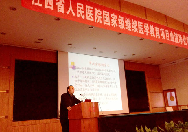 为加强和规范血液净化室的管理,强化血液净化科室规范化建设与质量控制,提高医疗、护理质量,确保医疗安全及设备运行安全,促进血液净化科室医、护、技人员更新知识、提高我省血液透析治疗安全和病人生存质量,江西省人民医院血液净化室于2013年4月19日-4月20日在南昌市洪都宾馆成功举办了《血液净化管理和质量控制学习班》。来自全省各市地县百余名血液净化同仁共聚一堂,交流血液净化方面的新成果及新进展。