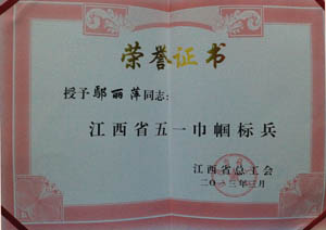 鄢丽萍同时荣获2012江西省总工会、人力资源和社会保障厅、卫生厅、妇联举办的“江西省女职工岗位创新技能大赛”临床护理组个人二等奖。