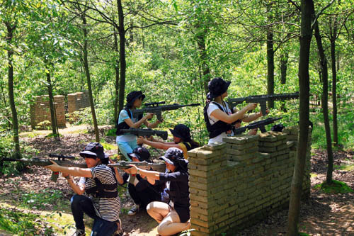 大约10点左右,青年们抵达了凤凰沟风景区,在团委黄副书记的安排下,青年们分成几批,依次入园游玩。一进景区,大家就被绿树成荫、鸟语花香的景色所吸引了,但大家更期待一项活动——激光CS真人野战。在大家的期待中,青年们终于被带到装备间换上了行头,一个个都变得英姿飒爽,男同事仿佛感觉自己身处PC游戏中。在教练的带领下,团员青年们以服色分成了两队——黑队和绿队,一队攻、一队守,轮番替换。在认真听取教练讲解如何使用枪、野战规则及注意事项后,大家各个都摩拳擦掌,等着一比高低。随着一声哨响,“战斗”开始了,各队团员在临时队长的指挥下,在丛林、废墟与壕沟间穿梭奋战,一时队友的呼喊声、“敌人”的脚步声、掩体后伸出的枪口、列队搜索时默契的手势、瞄准镜前致命的一次狙击,让大家体验到了真人战斗的刺激与成就感。最终黑队以2:0完胜绿队,大家又是一阵雀跃。