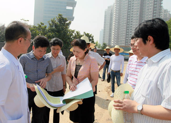 5月22日,烈日炎炎,省卫生厅副厅长万筱明一行视察了省人民医院凤凰洲分院工地,厅副巡视员方晓等陪同视察。省人民医院院长时军、院党委书记雷良华、副院长王晓华等相关部门负责同志向卫生厅领导汇报了新院建设进展。