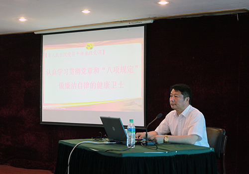 5月24日下午,省卫生厅党组成员、省纪委驻厅纪检组组长、厅直机关党委书记赖厚明到我院上了一堂题为“认真学习新党章和八项规定,做廉洁自律的健康卫士”的廉政党课。院领导班子及全院中层干部参加。