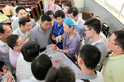 专家的讲座一步步将学习的气氛推向高潮,特别是下午的动物实验课上,赖珩莉主任对动物心脏进行实体心脏解剖和讲解,在CARTO3三维电生理标测系统指导下给活体催眠后的动物进行射频消融治疗。学员们陆续动手操作起来,在专家的指导下,在动物身上现场实验,这种方式把学员们的学习带入了更高的深度。这种亲身的三维电生理操作,学员们都是第一次。感触颇深,收获颇丰。这也是江西省首次将动物实验带入学习班。所有学员均表示此次学习不亚于的临床实践,较以往的学习有了质的飞跃,对未来的工作会有更大的帮助,真是受益非浅,带来全新的感受。