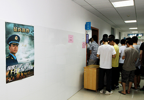 一名参检大学生说,自己是学土木工程专业的,“希望当一名工程兵,报效祖国”。参检的学生多数是大学同班同学,结伴而来,入伍积极性高。