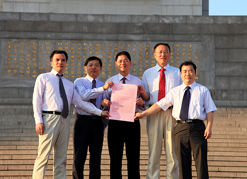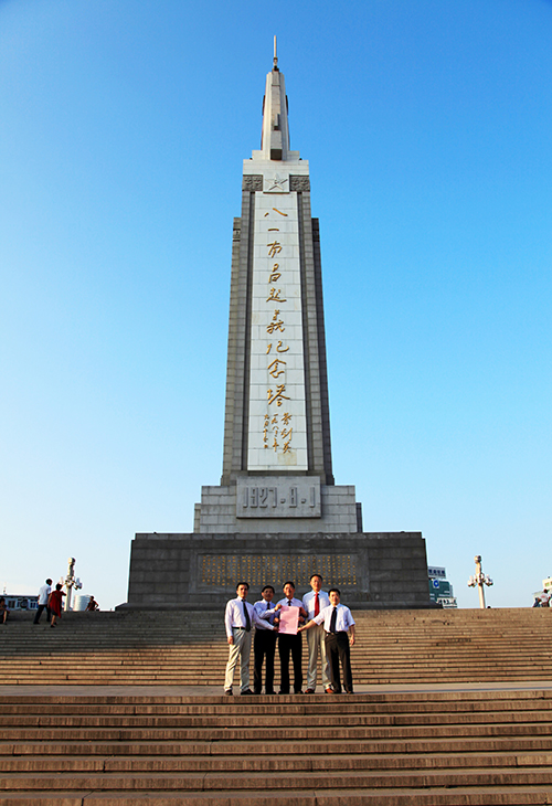 8月1日清晨6:30,来自赣台两地的5名骨科专家汇聚南昌市八一广场,在八一起义纪念碑下庄重宣言,宣布组建成立江西省无柄髋关节工作小组,致力于收集所有患者的文档,开发改良植入物和器械,研究骨愈合和组织再生,制定手术操作规范,开展手术技术培训,促进成果转化应用。